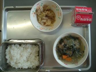 今日はホイコーロー、春雨スープ、ごはん、牛乳でした。