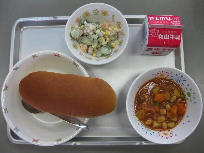 牛乳は、背が伸びたり、体重が増えたりする皆さんに必要なカルシウムをたくさん含んでいるので、毎日出されています。給食では、みなさんが1日に必要なカルシウムの量の約半分を取ることができるように計算されています。残さず飲んで、丈夫な骨や歯を作りましょう。
