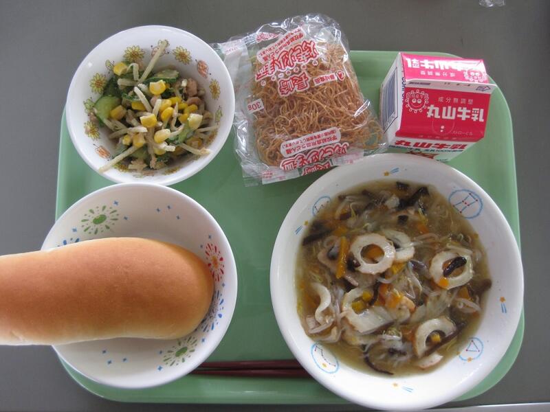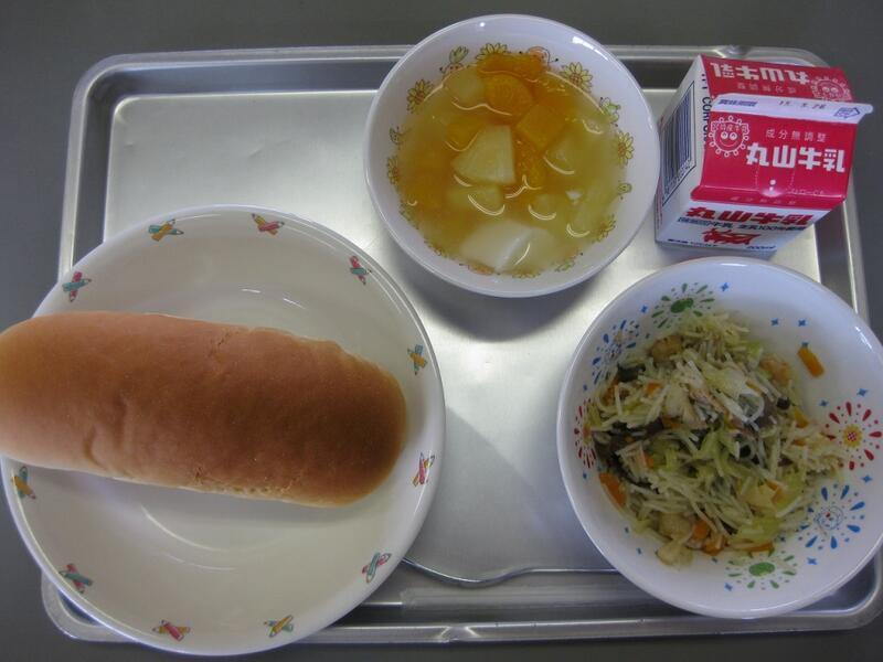 今日は、野菜たっぷりのビーフンと、つるっと食べられる杏仁フルーツでした。最近、暑くなってきて、夏の足音が聞こえてくるようです。 暑い日に、冷たいフルーツを食べて、今日も昼休みに元気に遊ぶ子ども達でした。ごちそうさまでした。