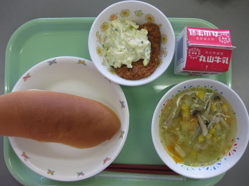 ○コッペパン ○牛乳 ○魚フライタルタルソースかけ ○ コンソメスープ