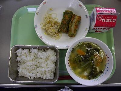 今日は朝ごはんのお話です。しっかり食べているでしょうか?朝起きたばかりの脳や体は、エネルギーが足りず、電池切れの状態です。動かすためには、新しい電池である「朝ごはん」が必要です。夜たくさん食べても、寝ている間に使われているので、足りないそうです。まずは牛乳を飲んだり、おにぎりやパンを食べるなど、簡単にできることからはじめて見ましょう。今日はちくわの磯辺揚げでした。磯辺の香りがとてもよく、おいしかったです。ごちそうさまでした。