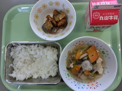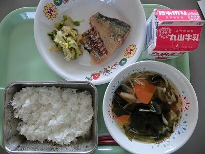 ご飯、牛乳、鯖ゆず味噌煮、白菜のごま和え、すまし汁