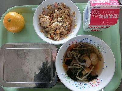 ご飯、牛乳、卯の花いり、つみれ汁、くだもの