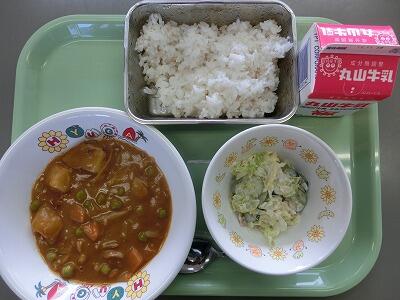 マヨネーズパン、牛乳、野菜のカレー煮、マリンサラダ