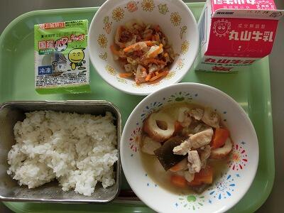 今日は骨太サラダがでました。カルシウムたっぷりのチーズとひじきの入ったサラダです。カルシウムは、骨を強くしてくれます。また、イライラを押さえてくれる働きもあるようです。給食といえば毎日出る牛乳にもカルシウムはたっぷり含まれています。寒い時期は、どうしても牛乳が残りやすいですが、成長期の子どもたちにはしっかり飲んで欲しいとおもっています。今日もおいしくいただきました。ごちそうさまでした。