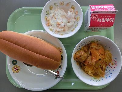きょうは、フルーツクリームをパンにはさみ、食べました。いつもと少し違う食べ方に子どもたちも嬉しそうです。この1年で、子どもたちの残食もずいぶん減りました。体も大きくなり、成長した姿が見られます。今年度の給食もあと少し、残さず食べて欲しいです。今日もおいしくいただきました。ごちそうさまでした。