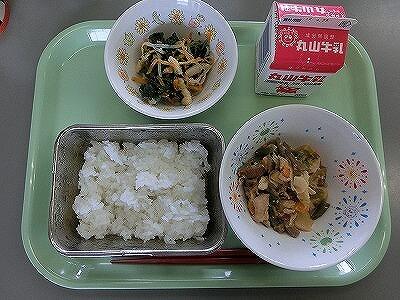 4月22日(金) たけのこの煮物 ちぐさ和え ご飯 牛乳