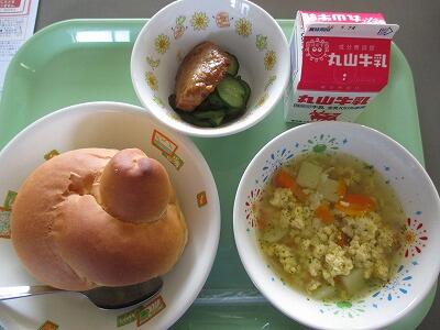 今日は、児童が大好きセルフバーガーでした。みんな大きな口を開けてほおばっていましたよ。ふわふわスープの「ふわふわ」は卵のふわふわでした。今日もおいしくいただきました。