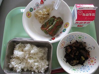 麦ごはん 牛乳 ちくわの磯辺揚げ もやし和え ひじきのいりに
