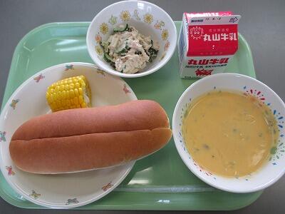 セルフドック(ツナサラダ) 牛乳 キャロットスープ ゆでトウモロコシ