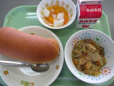 今日のシチューは、エビやイカなどが入ったシーフードシチューでした。魚介の出汁がきいた温かいシチューはコッペパンとも良く合って、みんな完食でした。今日もおいしくいただきました。