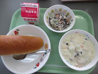 今日は寒かったので、温かくて甘~い味噌は、ぴったりでした。酢の物の昆布は、大きめに切られていたので、歯ごたえがあっておいしかったです。今日もおいしくいただきました。