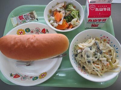 減量コッペパン 牛乳 クリームスパゲティ 冬野菜の温サラダ ごまドレッシング