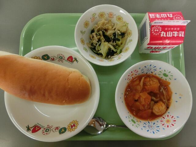 ミルクパン 牛乳 肉団子のケチャップ煮 春野菜のナッツ和え