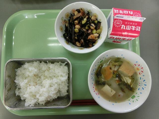 麦ごはん 牛乳 ひじきの炒り煮 豚汁