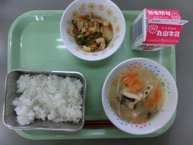 今日の給食は、千切り大根や高野豆腐など、なんだか昔懐かしい味が