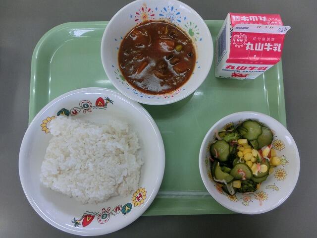 今日の給食は、人気メニューのひとつでもあるハヤシライスでした。ご飯の