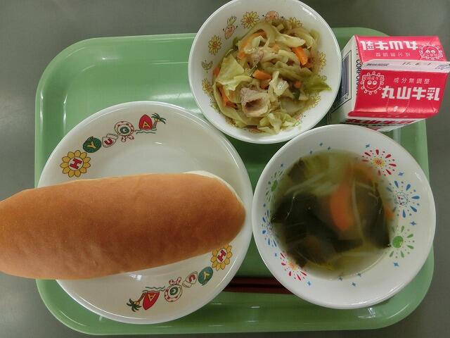 コッペパン 牛乳 ホイコーロー 五目スープ