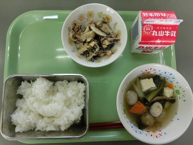 ご飯 牛乳 つみれ汁 たけのこサラダ