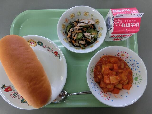 ミルクパン 牛乳 ウインナーのチリソース煮 れんこんサラダ