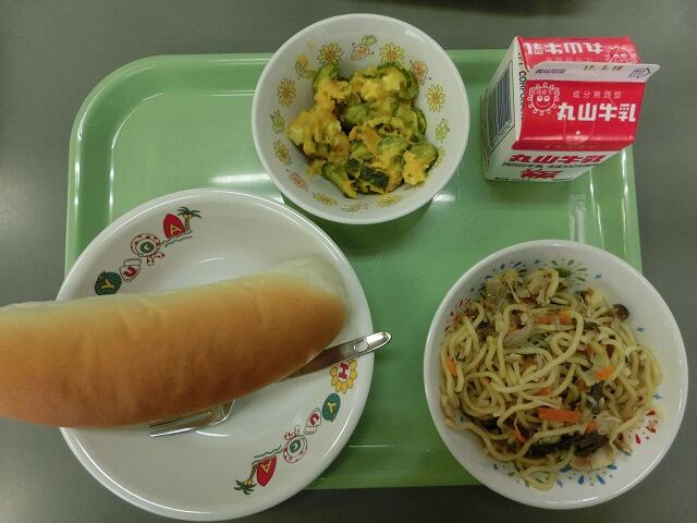 減量コッペパン 牛乳 皿うどん 大豆のサラダ