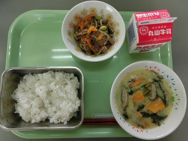 麦ごはん 牛乳 牛肉のしぐれ煮 日夢向スープ