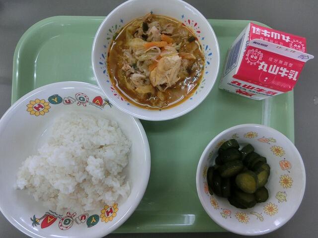 コッペパン 牛乳 ホイコーロー 五目スープ