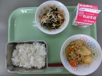 麦ご飯 牛乳 じゃがいものそぼろ煮 千草和え