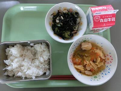 ご飯 牛乳 いりどうふ 茎わかめの酢の物