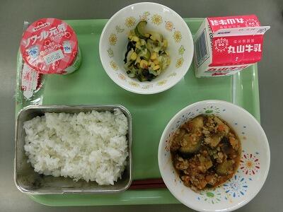 麦ごはん 牛乳 マーボーなす 海そうの中華和え ヨーグルト