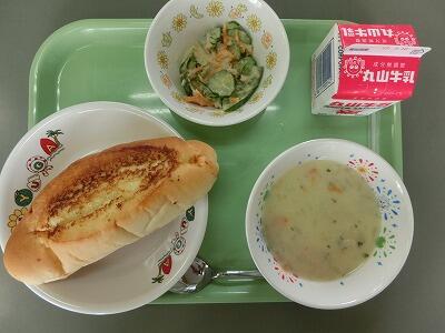 マヨネーズパン 牛乳 ビーンズチャウダー ゴーヤサラダ