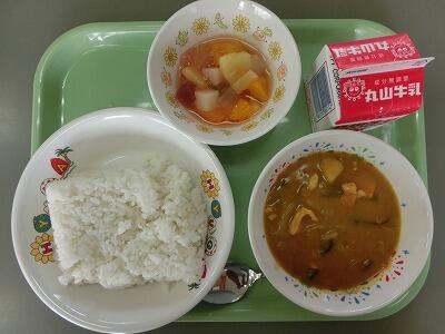 夏野菜カレー 牛乳 フルーツジュレ和え