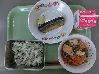 わかめご飯 牛乳 焼き魚 へべす添え とうがんの煮もの