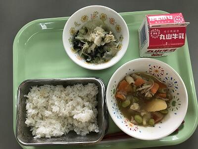 麦ご飯 牛乳 五目きんぴら はちはい汁