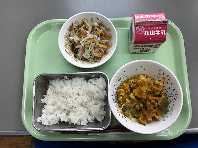麦ご飯 牛乳 かぼちゃのそぼろ煮 まだか漬け