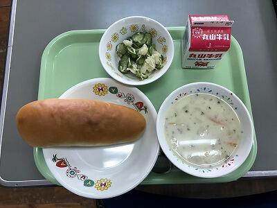今日は米粉パンに米粉のポタージュスープで米粉づくしのメニューでした。給食の米粉パンは宮崎県で作られた米の粉から作られていて、とてももちもちしていて子ども達に人気のパンです。今日もおいしくいただきました。
