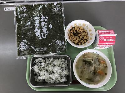 わかめごはん おむすびのり 大豆と昆布の煮物 大根の味噌汁