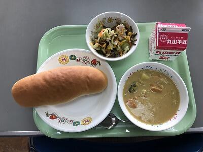 コッペパン 牛乳 カレーシチュー りっちゃんサラダ