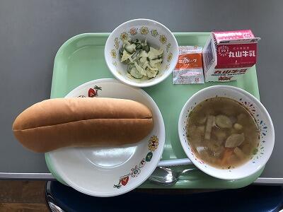 ドッグパン 牛乳 ミルメーク 卵サラダ 根菜ミネストローネ