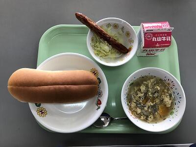 ドッグパン 牛乳 ウィンナー キャベツ ふわふわスープ