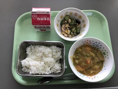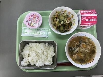 今日は、野菜たっぷりのみそ汁にごぼうやれんこんなどの根菜が入ったきんぴらでした。ごはんがすすむ味付けになっていて、子どもたちも残さず食べていたようです。味付けに使われているしょうゆやみそは、大豆からできていますが、しょうゆは、英語で「ソイ・ソース」と呼ばれ、海外でも人気の調味料です。今日もおいしくいただきました。