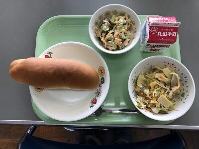減量コッペパン 牛乳 春野菜のパスタ ミモザサラダ