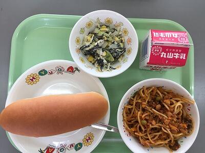 減量コッペパン 牛乳 スパゲティミートソース たけのこサラダ