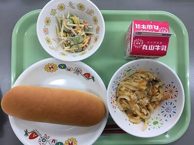 減量コッペパン 牛乳 肉みそうどん カミカミサラダ