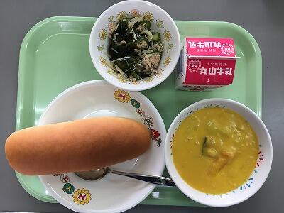 コッペパン 牛乳 パンプキンシチュー きのこサラダ