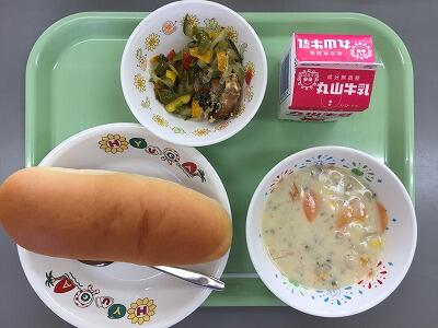 チーズパン 牛乳 魚のエスカベーシュ コーンチャウダー