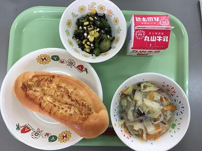 チーズパン 牛乳 チキン南蛮 せん切りキャベツ 野菜スープ