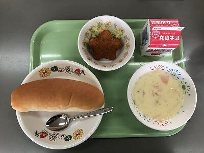 コッペパン 牛乳 星のコロッケ そえ野菜 パンプキンスープ