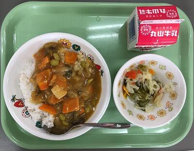 夏野菜のカレー 牛乳 カラフルサラダ