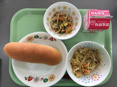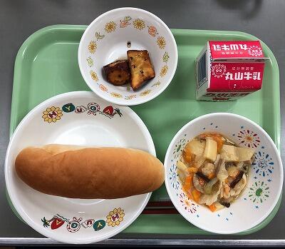 減量コッペパン 牛乳 八宝菜 大学芋